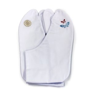 ポイント刺繍の足袋はこはぜがついているタイプなので