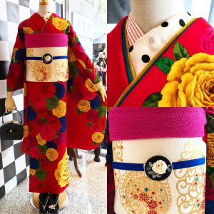 赤地に広がる薔薇は可憐で色気のあるデザインに