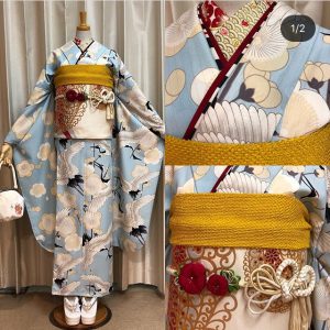 和風館 梅鶴<片身変わり>・水色コーディネートです