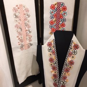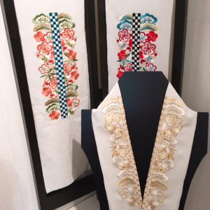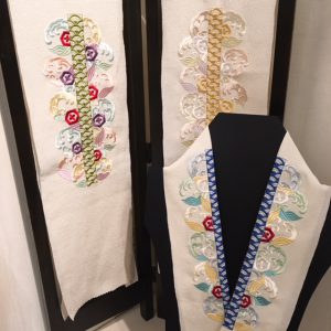 染めの雲取りに、繊細な刺繍の万寿菊が