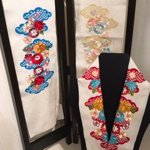 ▼雲取り友禅菊尽くし (左から、青、黄、赤) ¥17,280(tax in)