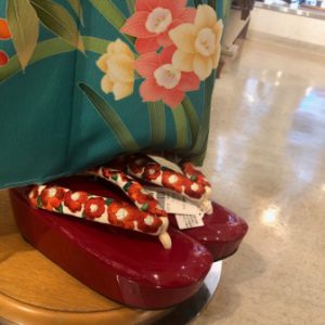 ベロアのバッグに、足元はこっぽりタイプで大正ロマンコーデが完成です