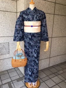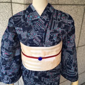 ▼半巾帯 岡重 縞に牡丹・オフ ¥12,960(tax in)