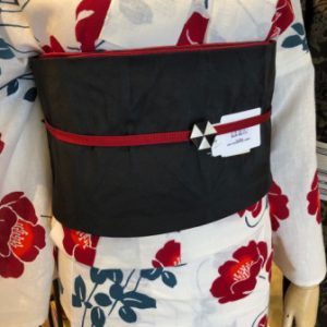 ◆半巾帯【そしてゆめ しじら/赤】 ¥12,960(tax in)