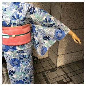 ゆかた全体が淡くまとまっているので、帯をあえて正反対の色にしてみました ( *´艸`)