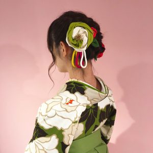 白い薔薇と抹茶の組み合わせでしなやかな印象に。