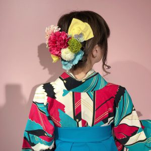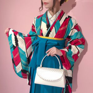 カラフルなお着物にはホワイトの小物でバランス調整を🐩