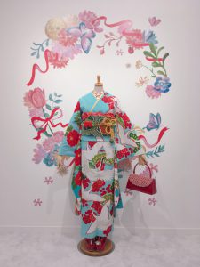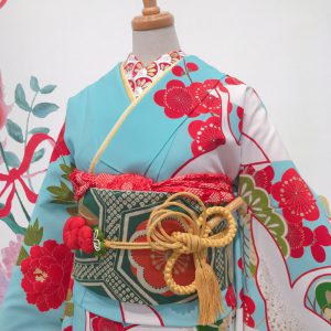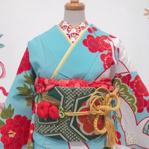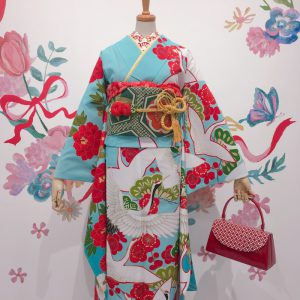 ▼きもの道楽 鶴と牡丹・水色 ¥140,400(tax in)