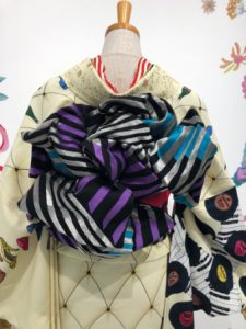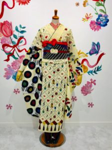 キモノの柄には珍しい洋風テイストで目立つこと間違いなしです