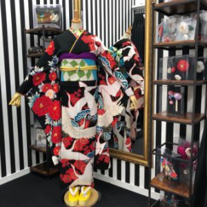 ◆振袖 きもの道楽 【鶴と牡丹 黒】¥140,400(tax in)