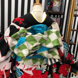帯はこの振袖の差し色にもなっている青系で合わせて