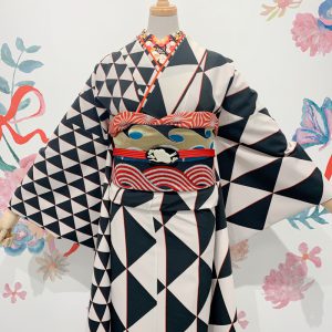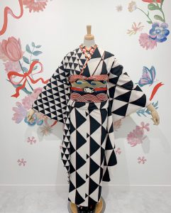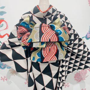 ▼きもの道楽 ウロコ片身替り・白黒 \73,440(tax in)