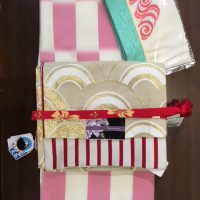 帯揚げは個性を出したいために、ダイヤ柄を✔