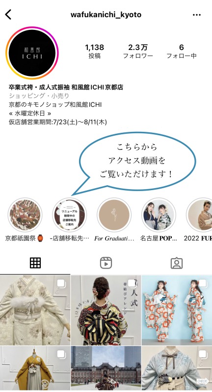 仮店舗へのアクセス動画は、ストーリーズハイライトからご覧いただけます!