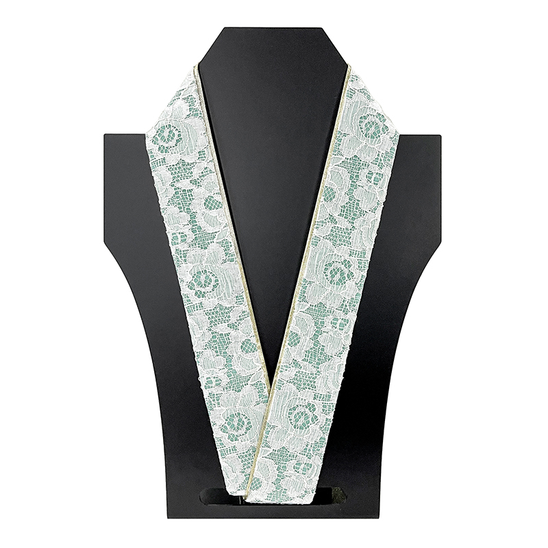 レースにパステルカラーや個性派カラーが組み合わさった伊達衿です。様々な着物に馴染みやすく、上品でガーリーなコーディネートにぴったりです。振袖・袴・普段着きものにも合わせて頂きやすいデザインです。