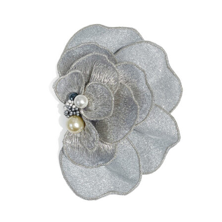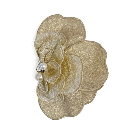 ラメできらびやかながらも、ボリュームは少なめですっきりとしたヘアスタイルにもぴったりな髪飾り。振袖・袴・普段着きものにも合わせて頂きやすいデザインです。また、二次会などのドレスにも合わせてご使用頂けます。