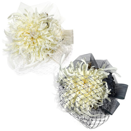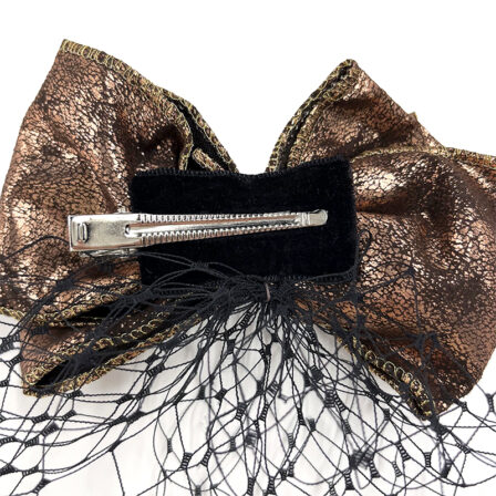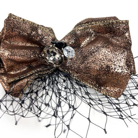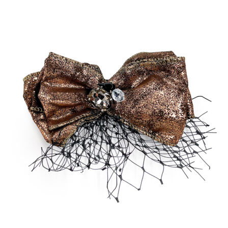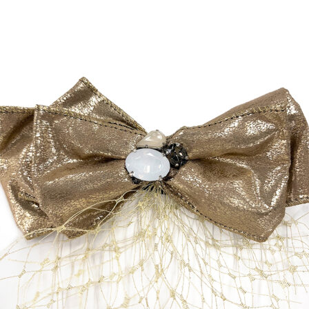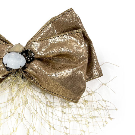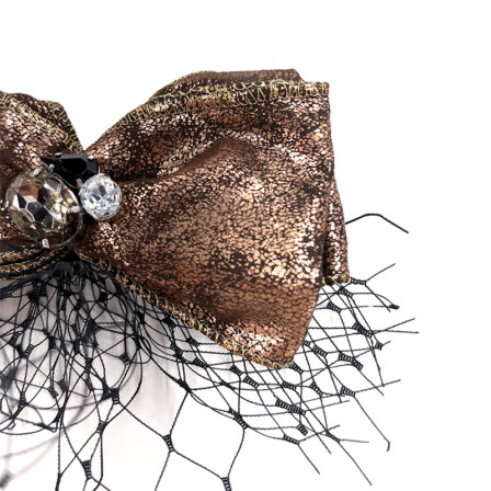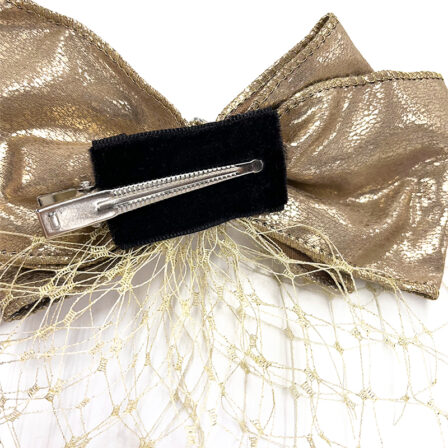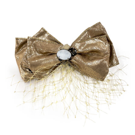 エッジの効いたメタリックリボンにビジューが付いて、リボン下のネットで華やかさも抜群☆かっこよくも可愛くもできるアイテム!振袖・袴・普段着きものにも合わせて頂きやすいデザインです。また、二次会などのドレスにも合わせてご使用頂けます。