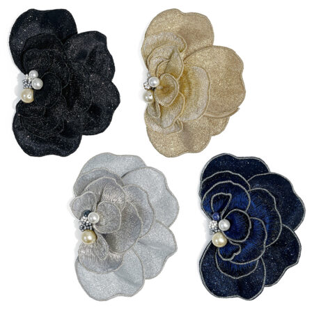 幅 14㎝/高さ 11cm ビジュー部分 幅2cm/高さ2cm リボン部分 幅14㎝/高さ8cm クリップ部分 2.5cm |
