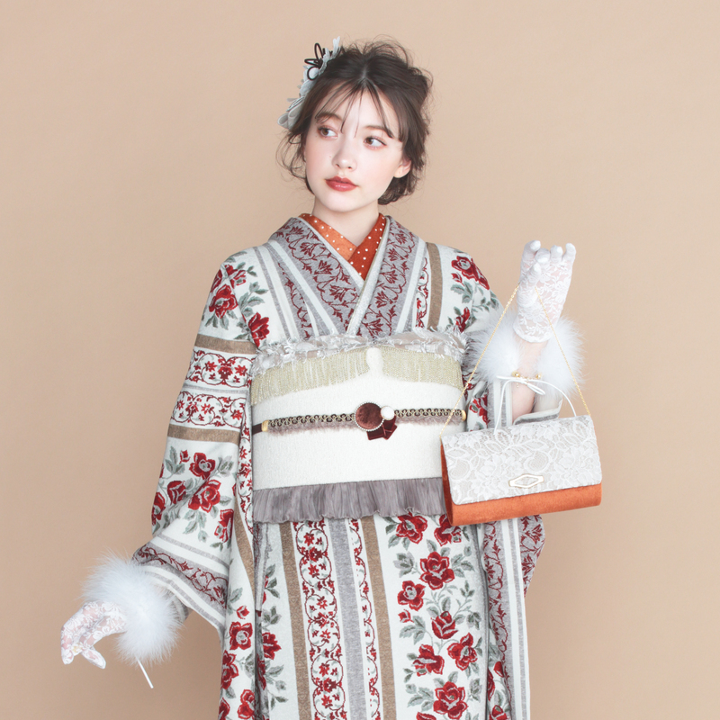 人気のくるみボタンの帯締めが進化して登場☆ワンポイントの平帯締めにくるみボタン、更に可愛くファーが付きました!!なかなか無いデザインです!振袖コーディネートを更に可愛く、引き締めるアイテムとなっております。