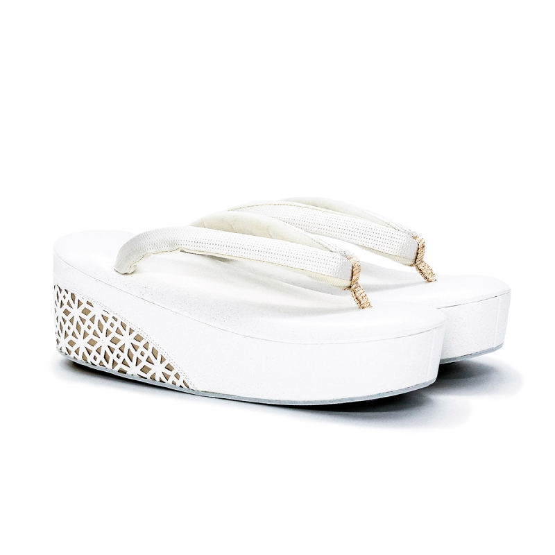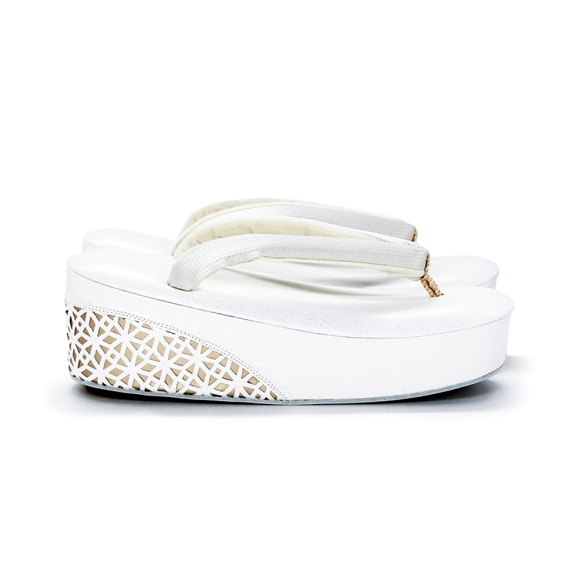 正面はシンプルに、後姿はヒール部分にクリスタル模様が施されたデザインのお草履です。振袖・袴・普段着きものにも合わせて頂きやすいデザインです。またお揃いでクリスタルパンチングバッグもございます。