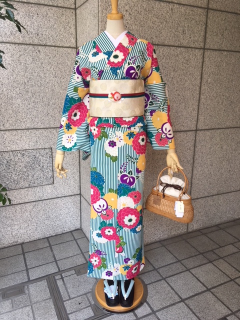 ◆新作浴衣◆和風館 "縞に万寿菊" ◆京都店◆